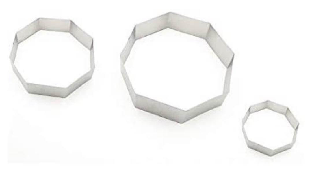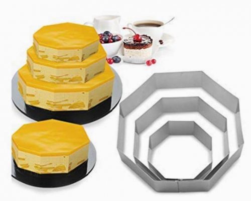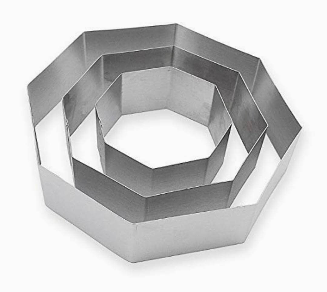 با استفاده از قالب رینگ شش ضلعی سه تکه به راحتی و بدون آسیب زدن به بافت کیک میتوانید کیک خود را به شکل شش ضلعی برش بزنید و کیک های چند طبقه زیبا درست کنید و با استفاده از تزیینات کیک جلوه آن ها را چند برابر کنید.