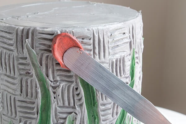 جنس پالت قنادی غالبا فلزی ( استیل 30 سانت )می باشد که به مقاومت و استحکام آن می افزاید و جنس دسته آن از پلاستیک فشرده که مناسب برای صاف و یکدست کردن خامه ی روی کیک استفاده می شود. . از نوک پالت برای طرح انداختن روی خامه نیز استفاده می شود.