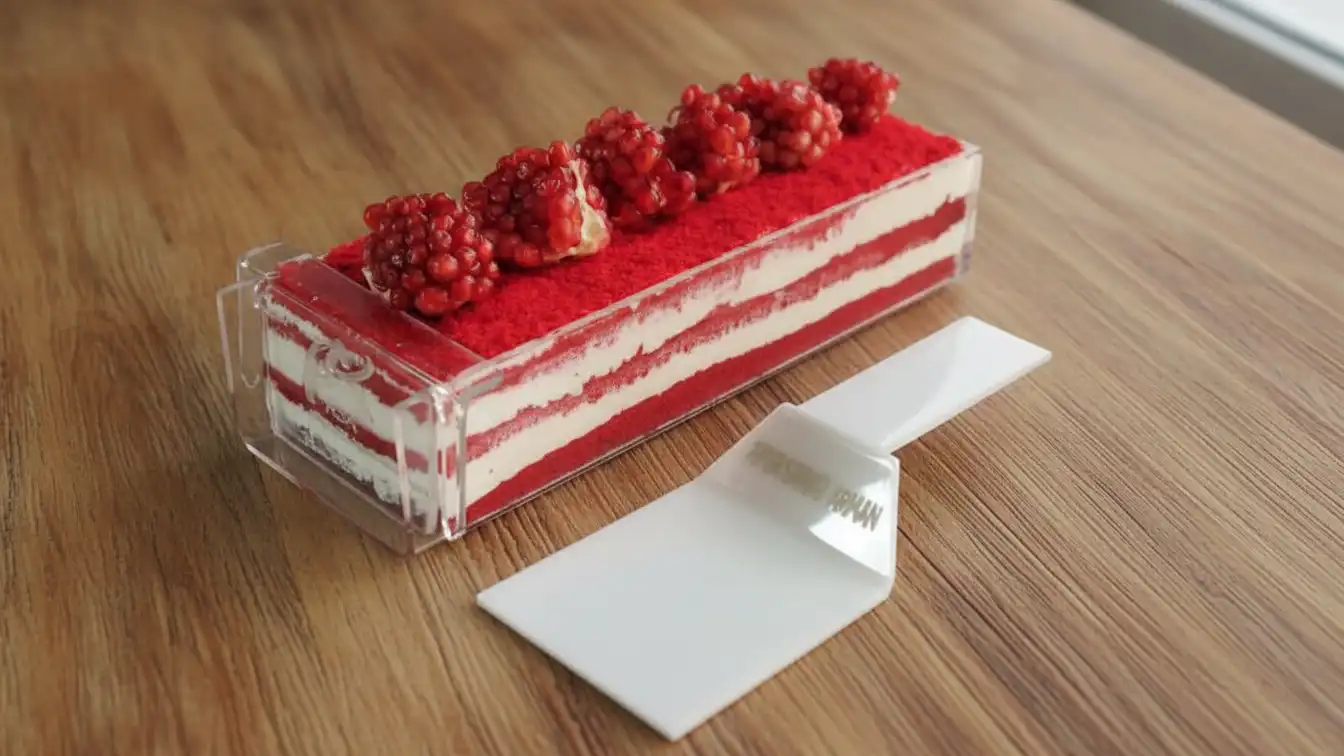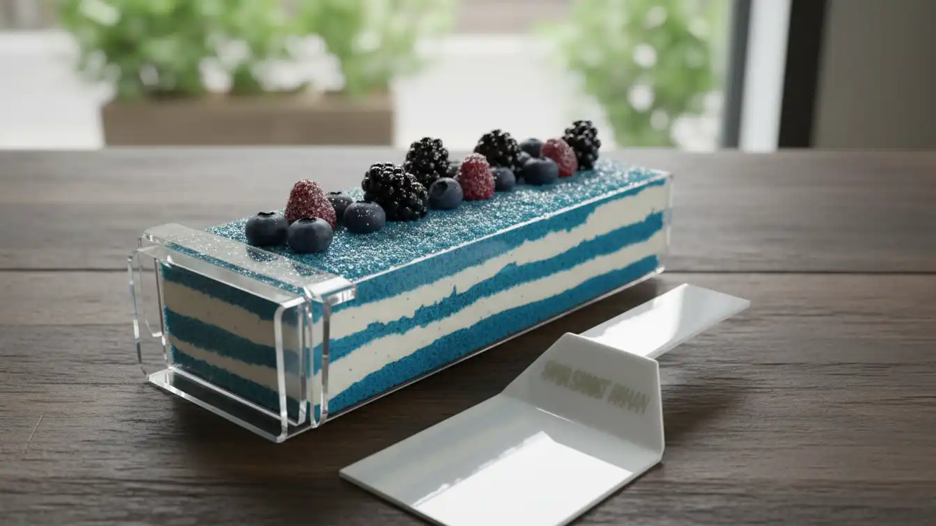 همانطور که در تصاویر ارسالی مشاهده میکنید، کیکهای رِد وِلوت و کیکهای آبی رنگ با تزئینات میوه، در این قالبها به شکلی بینظیر و هنری نمایش داده شدهاند. شفافیت کامل پلکسی، هر لایه از خامه و کیک را به وضوح نشان میدهد و زیبایی بصری محصول نهایی را به اوج میرساند.