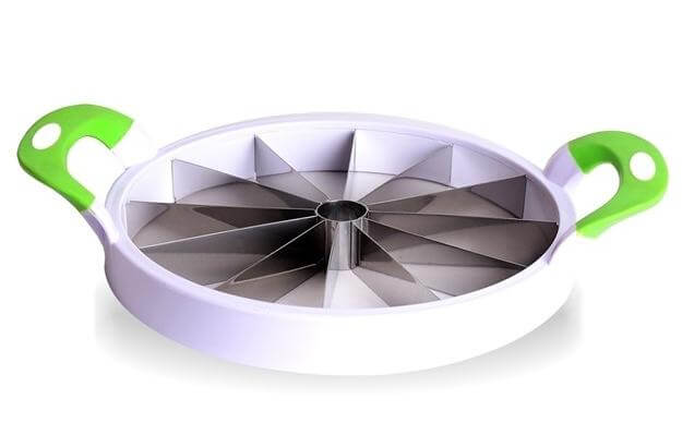 با استفاده از کاتر برش علاوه بر میوه هایی چون هندوانه ،طالبی،ملون می توانید کیک و پیتزا و… را نیز به راحتی تنها با یک فشار و در عرض چند ثانیه به ۱۲قسمت یک اندازه و یکنواخت برش بزنید. این ابزار پرکاربرد جایگزین مناسبی برای چاقو بشمار می رود و سبد میوه شما را با ایجاد برش های یک اندازه از میوه تزئین می نماید.